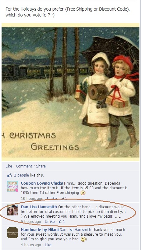 Because of extra time, listening, and talking, I've possibly expanded my customer base. So via the traditional way, I've built a relationship with a buying customer who then could happily share me/Handmade by Hilani, with her friends and co-workers.